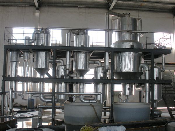 節(jié)能效果顯著,比單效蒸發(fā)器節(jié)約蒸氣量70%左右。物料在密閉系統(tǒng)中蒸發(fā)濃縮,環(huán)境清;本系統(tǒng)設(shè)置獨(dú)特的除沫裝置,防止跑料現(xiàn)象。