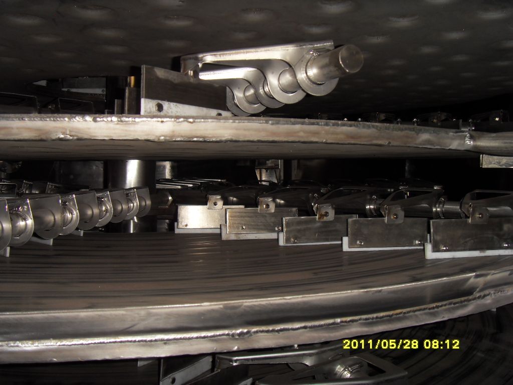 ◎碾滾:對(duì)易結(jié)塊和需要粉碎的物料,在適當(dāng)位置配加碾滾,可以強(qiáng)化傳熱和干燥過(guò)程。